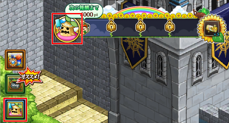 ※「王国勲章報酬」の内容や交換・達成状況については「メニュー」>「交換所」>「王国勲章」タブまたは、城下町で画面左上に表示される「王国勲章」のアイコンより確認できます。