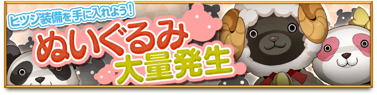 | 砂漠のぬいぐるみ | シナリオ15章「仮面の男を追え」クリア 「森のぬいぐるみ」クリア 総合能力10万以上 |