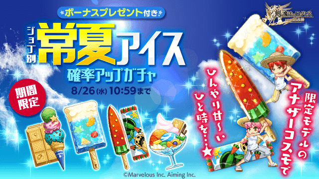 ご好評につき、以下の期間にて「ジョブ別 常夏アイス確率アップガチャ」を追加販売することが決定しました!