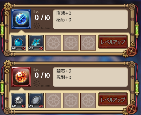 ※ステータスの種類により、レベルアップに必要な素材が異なります。詳細はゲーム内でご確認ください。