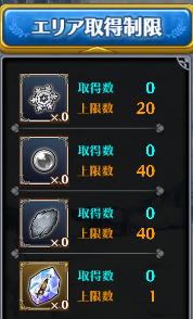 エリアによって入手可能な素材は異なり、クエスト中、画面右上に表示される「エリア取得制限」ボタンから、入手できる素材と取得上限数を確認できます。