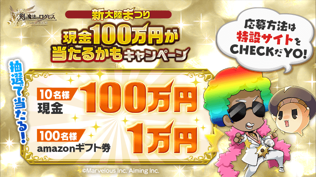 新大陸実装を記念して、期間中「現金100万円が当たるかもキャンペーン」を開催します。