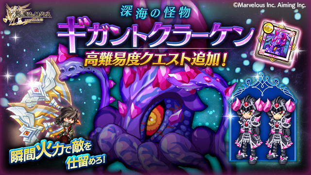 期間中、「ログレス」タブのスペシャルクエストにて「深海の怪物 ギガントクラーケン」を開催します。