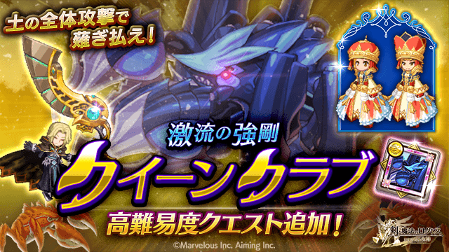 期間中、「ログレス」タブのスペシャルクエストにて「激流の強剛 クイーンクラブ」を開催します。