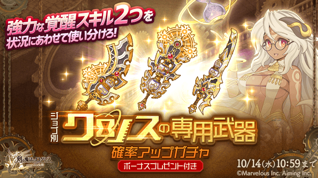 ●2つの覚醒スキルを使い分けろ!「ジョブ別 クロノスの専用武器確率アップガチャ」