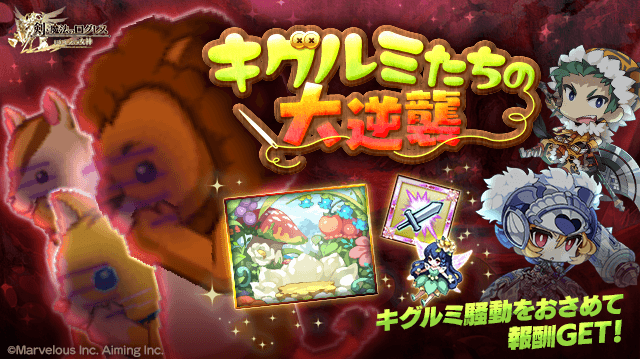 期間中、「ログレス」タブのスペシャルクエストおよび時限イベントにて「キグルミたちの大逆襲」を開催します。