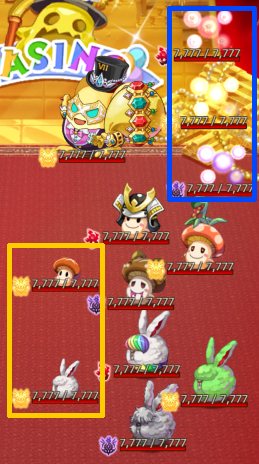 ▲黄色枠のモンスターに賭けたら種族グループ賭け、青色枠のモンスターに賭けたら属性グループ賭けとなるぞ!
