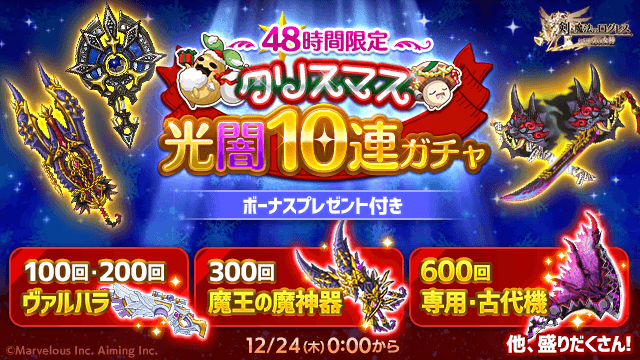【12/24(木)0:00から】人気武器もりだくさんの超豪華ボーナス付き★「クリスマス光闇10連ガチャ」