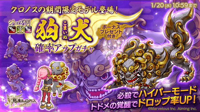キュートな狛犬の期間限定モデル登場!「ジョブ別 狛犬確率アップガチャ」