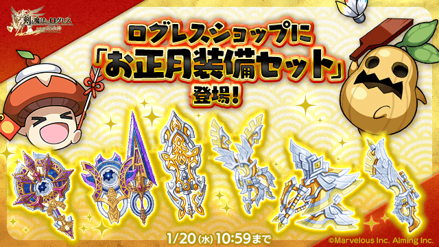 期間中、ログレスショップの「オススメ」タブにて、お正月記念装備セットを販売します。