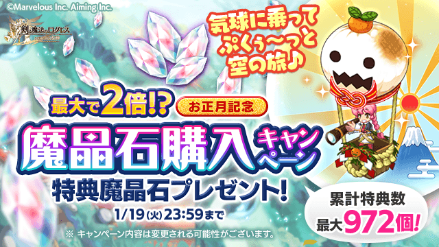 ※特典魔晶石の上限は972個となります。