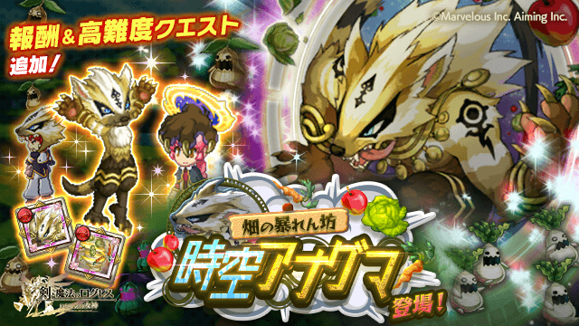 期間中、「ログレス」タブのスペシャルクエストおよび時限イベントにて「畑の暴れん坊 時空アナグマ」を開催します。