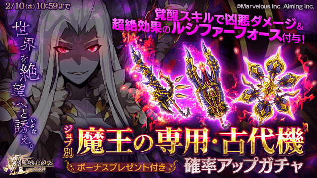 圧倒的な力で震撼させよ!「ジョブ別 魔王の専用・古代機確率アップガチャ」