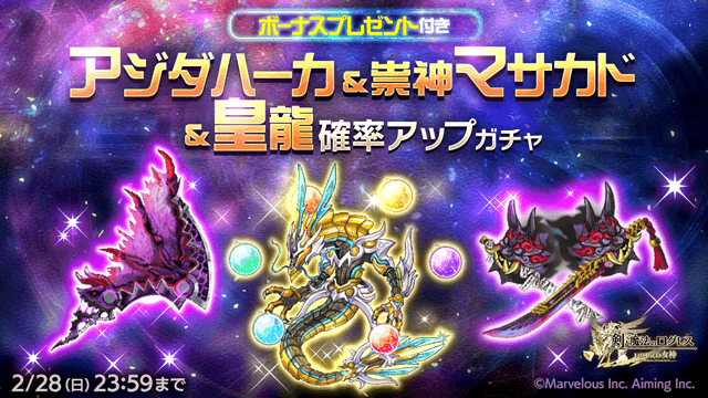 超強力な一撃を放て!「アジダハーカ&祟神マサカド&皇龍 確率アップガチャ」
