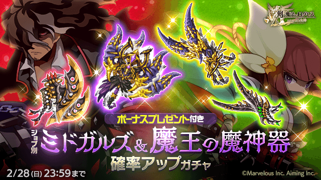 強力な魔神器を手に入れろ!「ジョブ別 ミドガルズ&魔王の魔神器確率アップガチャ」