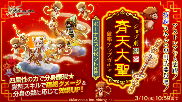 期間中、ガチャの「オススメ」タブにて「ジョブ別 斉天大聖確率アップガチャ」を販売します。