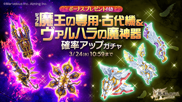 圧倒的火力で攻めろ!「ジョブ別 魔王の専用・古代機&ヴァルハラの魔神器確率アップガチャ」
