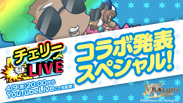 お知らせ 2021年04月07日(水) コラボ生放送 【4/9(金)20:00放送】コラボ情報解禁!「チェリーLIVE」やるYO! ログレスのファッションリーダー「チェリー」がお届けするLIVE番組『チェリーLIVE』を放送します。 今回は「コラボ発表スペシャル」! 近日開催予定のコラボタイトルを、番組内でドドンと紹介しちゃいます! 放送まであとわずか!お楽しみに★ 放送日時 2021/4/9(金)20:00~20:29 ※予定 ご視聴はこちらから YouTubeのログレス公式チャンネルはこちら リスト