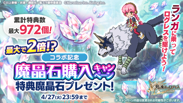 ランガと共にログレス王国を駆けよう!「魔晶石購入キャンペーン」