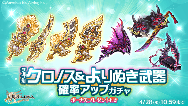 期間中、ガチャの「オススメ」タブにて「ジョブ別 クロノス&よりぬき武器確率アップガチャ」を販売します。