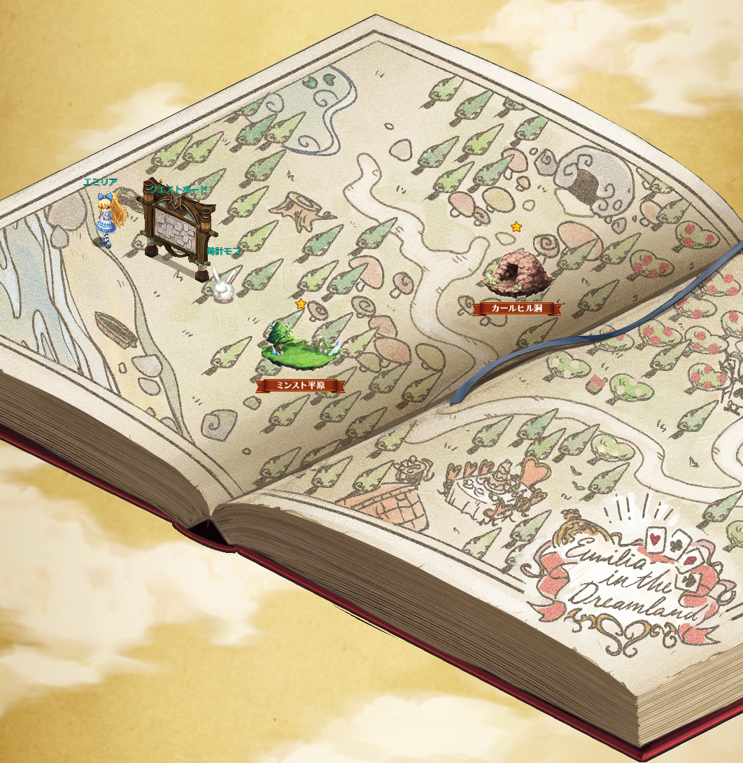 モコを追いかけ、夢の国「ドリームランド」に迷い込んだエミリア。夢の国を冒険して「ドリームP」をはじめとする大量の報酬を手に入れよう!