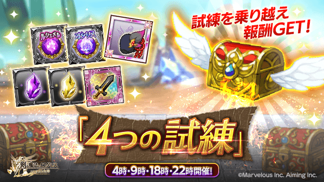 期間中、「ログレス」タブの時限イベントにて「4つの試練」を開催します。