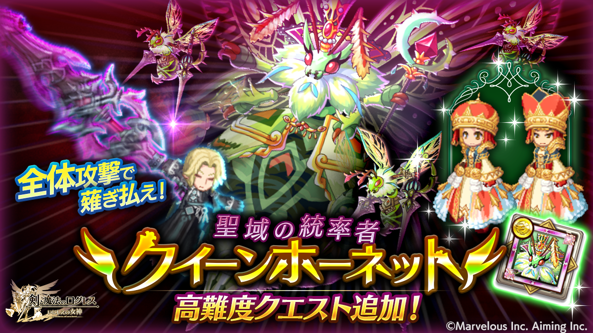 期間中、「ログレス」タブのスペシャルクエストにて「聖域の統率者 クイーンホーネット」を開催します。
