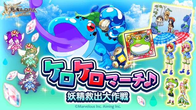 期間中、「ログレス」タブのスペシャルクエストおよび時限イベントにて「ケロケロマーチ♪」を開催します。