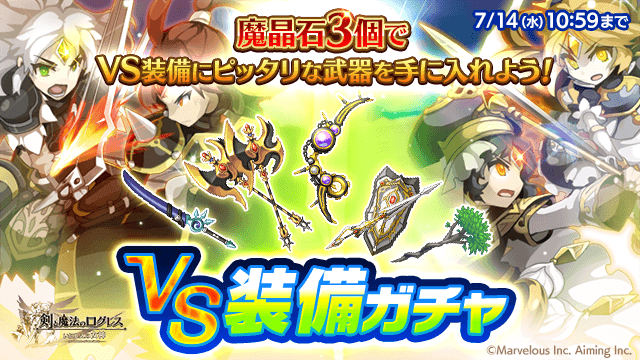 期間中、ガチャの「オススメ」タブにて「VS装備ガチャ」を販売します。