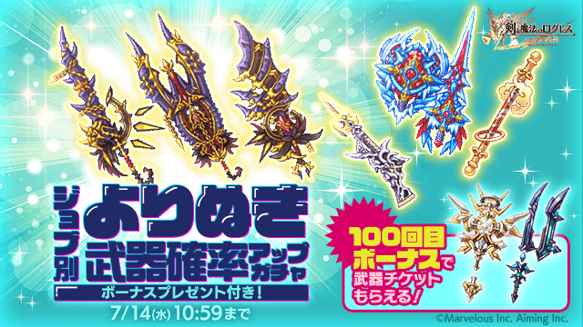 期間中、ガチャの「オススメ」タブにて「ジョブ別 よりぬき武器確率アップガチャ」を販売します。