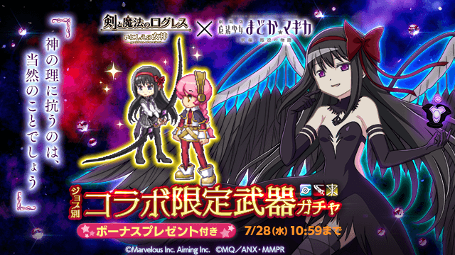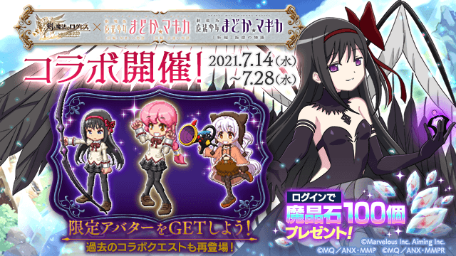 期間中、『ログレス』×『劇場版 魔法少女まどか☆マギカ[前編]始まりの物語/[後編]永遠の物語』『劇場版 魔法少女まどか☆マギカ[新編]叛逆の物語』コラボイベントを開催します。