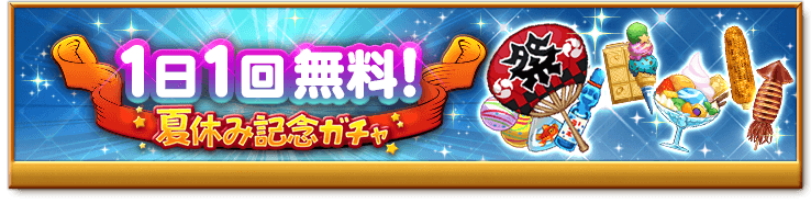 ※「1日1回無料!夏休み記念ガチャ」の利用回数は毎日0:00にリセットされます。