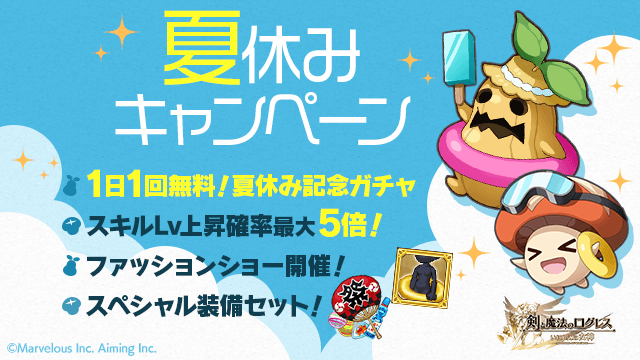 無料ガチャや装備セット販売など、夏を盛り上げる催しが盛りだくさん!