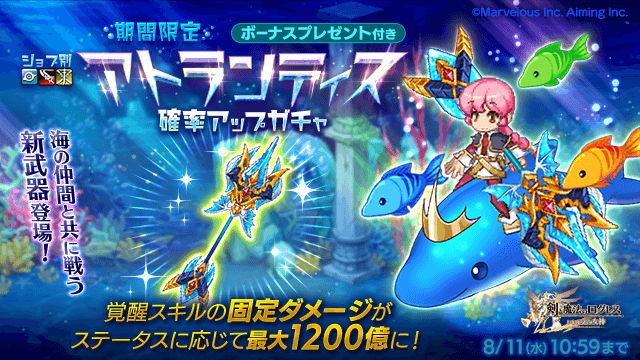 期間限定武器「アトランティスの専用武器・古代機」登場!イルカの背に乗って大海原へ!