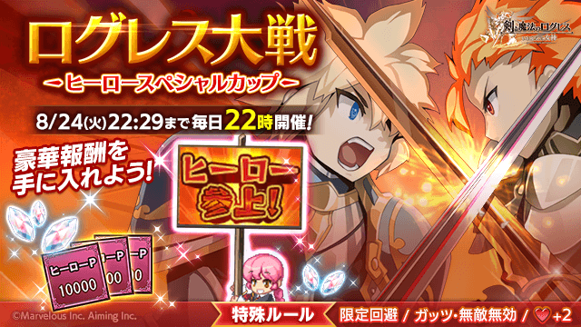 期間中、「ログレス」タブの時限イベントにて、ログレス大戦「ヒーロースペシャルカップ」を開催します。