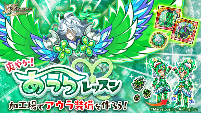 イベント限定素材を集め、加工場で「アウラの兜-風神-」を含むアウラ装備や「風神の魔神器」シリーズを製作しよう!