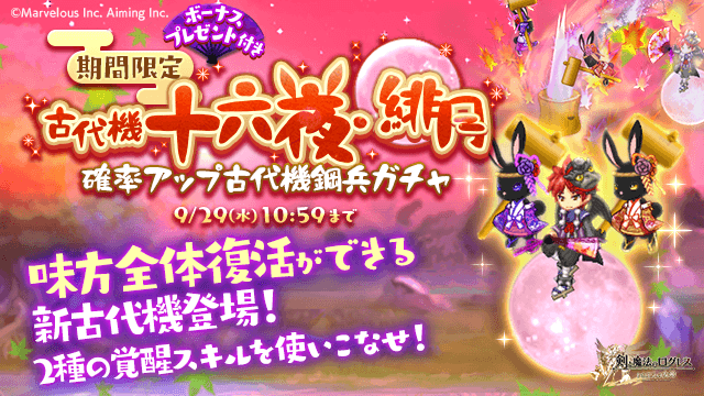 ●古代機鋼兵で味方全体復活!「古代機十六夜・緋月確率アップ 古代機鋼兵ガチャ」
