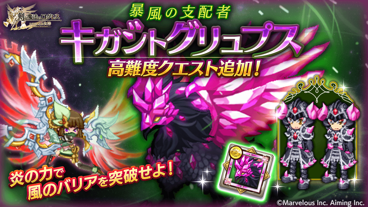 期間中、「ログレス」タブのスペシャルクエストにて「暴風の支配者 ギガントグリュプス」を開催します。