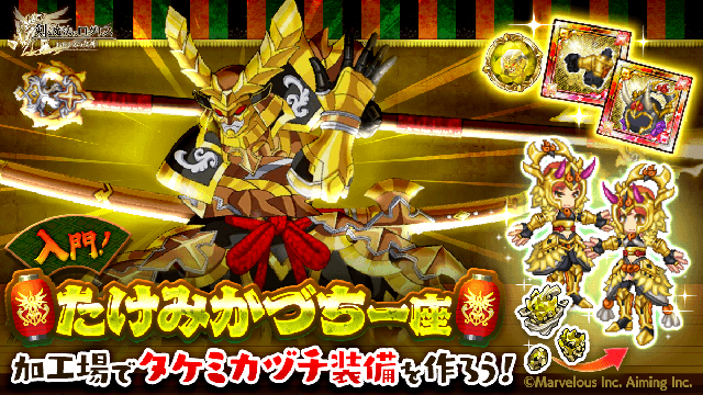 イベント限定素材を集め、加工場で「タケミカヅチの兜-雷神-」を含むタケミカヅチ装備を製作しよう!