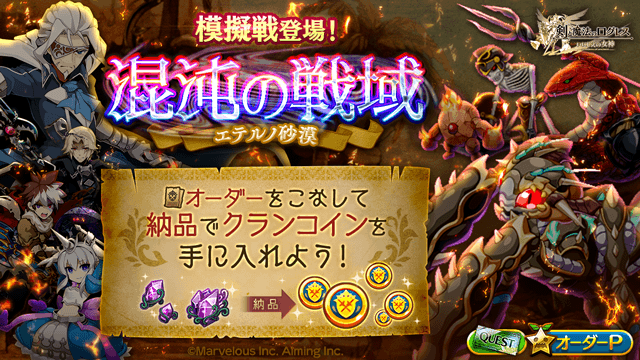 期間中、「クランクエスト」タブにて「混沌の戦域~エテルノ砂漠~」を開催します。