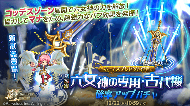 秘められし女神の力を解き放て――新武器「六女神の専用武器・古代機」登場!