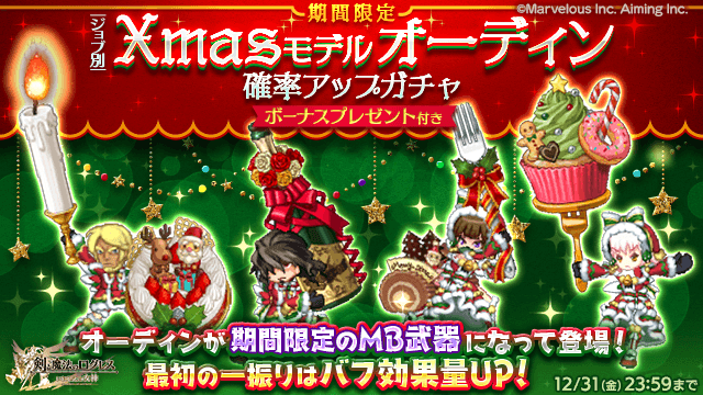 クリスマスを彩るMB武器登場!「ジョブ別 Xmasモデルオーディン確率アップガチャ」