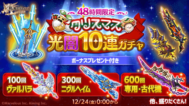 【12/24(金)0:00から】人気武器もりだくさんの超豪華ボーナス付き★「クリスマス光闇10連ガチャ」