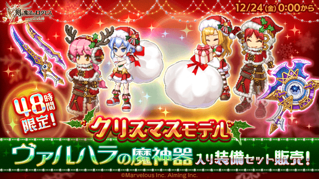 期間中、ログレスショップの「オススメ」タブにて、「クリスマスモデル ヴァルハラの魔神器」入り装備セットを販売します。