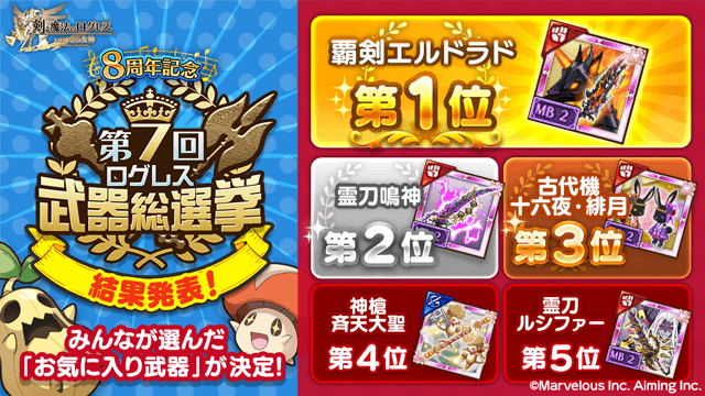 みんなの選んだ『お気に入り武器』が決定!8周年記念「第7回ログレス武器総選挙」結果発表!