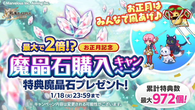 ※特典魔晶石の上限は972個となります。