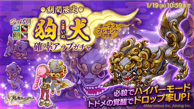 期間中、ガチャの「オススメ」タブにて「ジョブ別 狛犬確率アップガチャ」を販売します。