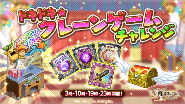 期間中、「ログレス」タブの時限イベントにて「ドキドキ☆クレーンゲームチャレンジ」を開催します。