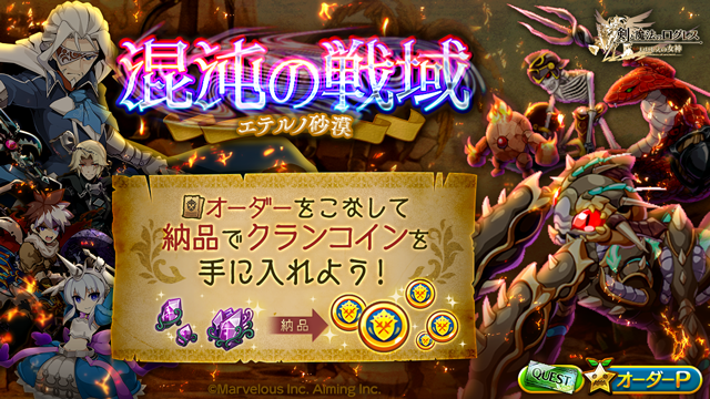 期間中、「クランクエスト」タブにて「混沌の戦域~エテルノ砂漠~」を開催します。