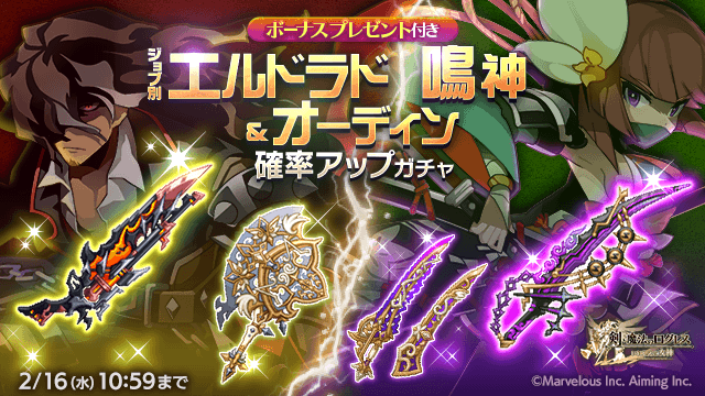強力な専用武器と超多段武器を手に入れろ!「ジョブ別 エルドラド・鳴神&オーディン確率アップガチャ」